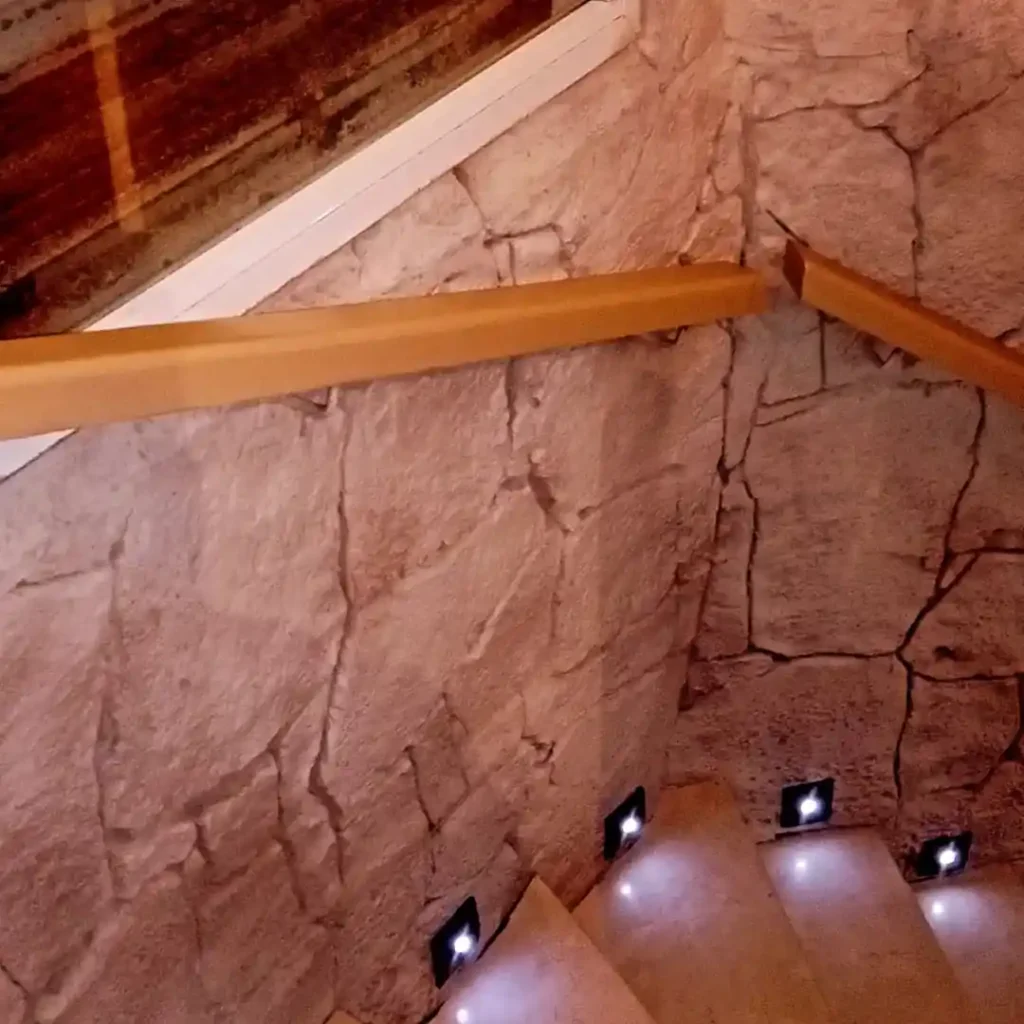 Este proyecto simula piedra natural pintando una superficie texturizada con formas de piedra natural.